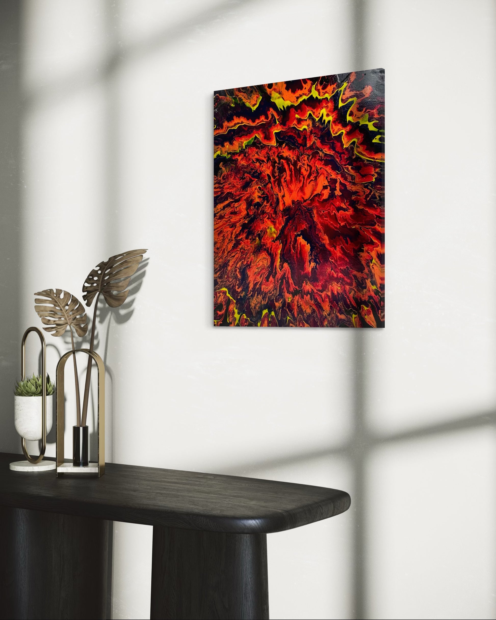Lose yourself in the unbridled chaos and raw energy of Inferno, a vivid eruption of molten reds, fiery oranges, and glowing yellows. This abstract whirlwind captures the ferocity of a blazing core, where destruction and creation coexist in perfect balance. Each fluid stroke mirrors the primal forces of nature, evoking the relentless power of fire and its ability to purify, transform, and renew. Let Inferno draw you into its passionate depths, reminding you of the untamed beauty within life’s most intense moments.