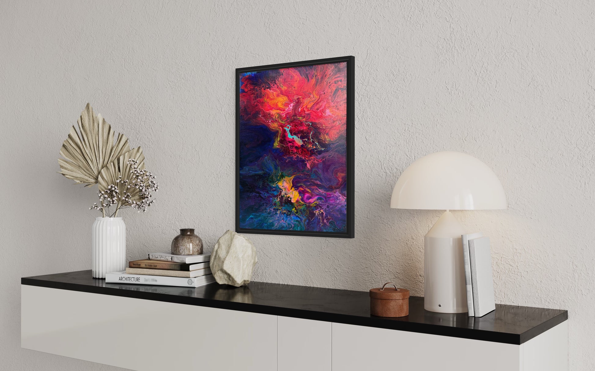 Immerse yourself in the mesmerising dance of colours as a majestic phoenix ignites the midnight canvas. Fiery hues of pink, orange, yellow, and red intertwine against a backdrop of mystical blues and purples, evoking a sense of enchantment and wonder. This abstract masterpiece captures the ethereal moment when myth and magic converge, inviting you to witness the mystical rebirth that only the eye can truly comprehend.